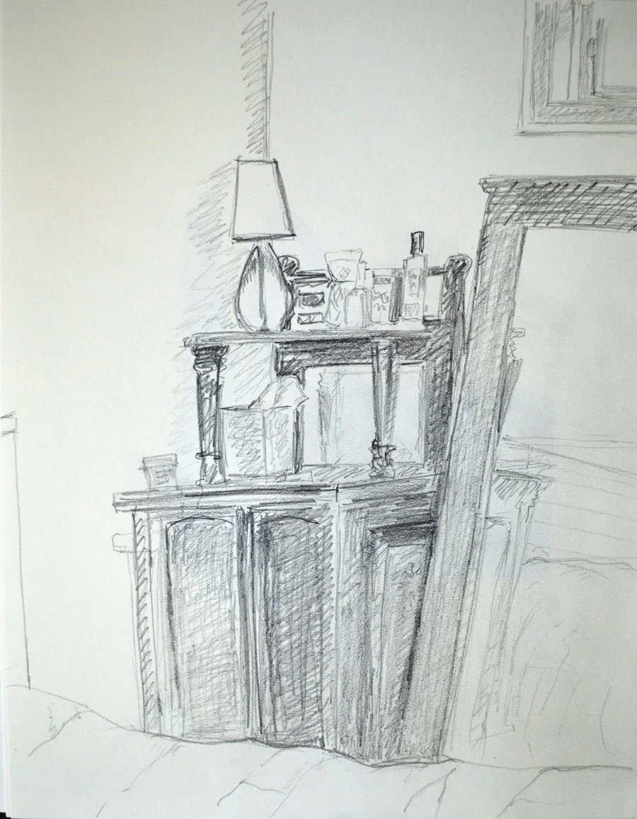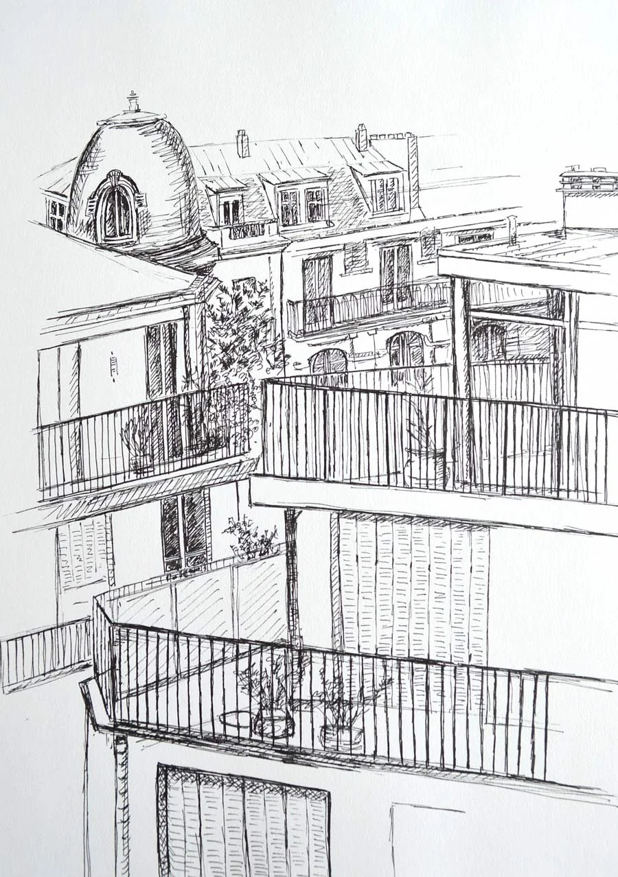 Some of these drawings are views of of Paris rooftops and apartments taken from sabbatical sketchbooks, others are sketches of details of family homes in Encinitas.